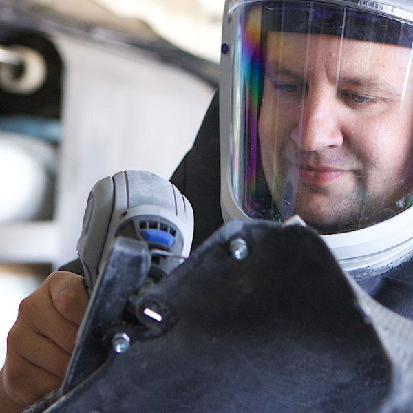 Die Originalkonturen des zu bearbeitenden Teils, wie etwa KFZ-Kotflügel, können von uns mit einem 3D-Scanner bis zu einem Volumen von 3 mal 3 mal 3 Meter eingescannt werden. Via CAD können diese Scans bearbeitet werden, um zum Beispiel eine Radlaufverbreiterung auszuführen. Aus diesen bearbeiteten Scans lassen sich Modelle im Maßstab oder Original ausdrucken – aber auch mittels Werkzeugen fräsen.